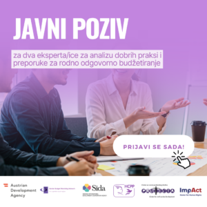 JAVNI POZIV ZA DVA STRUČNJAKA ZA ANALIZU DOBRIH PRAKSI I PREPORUKA ZA RODNO ODGOVORNO BUDŽETIRANJEOn11/12/2025